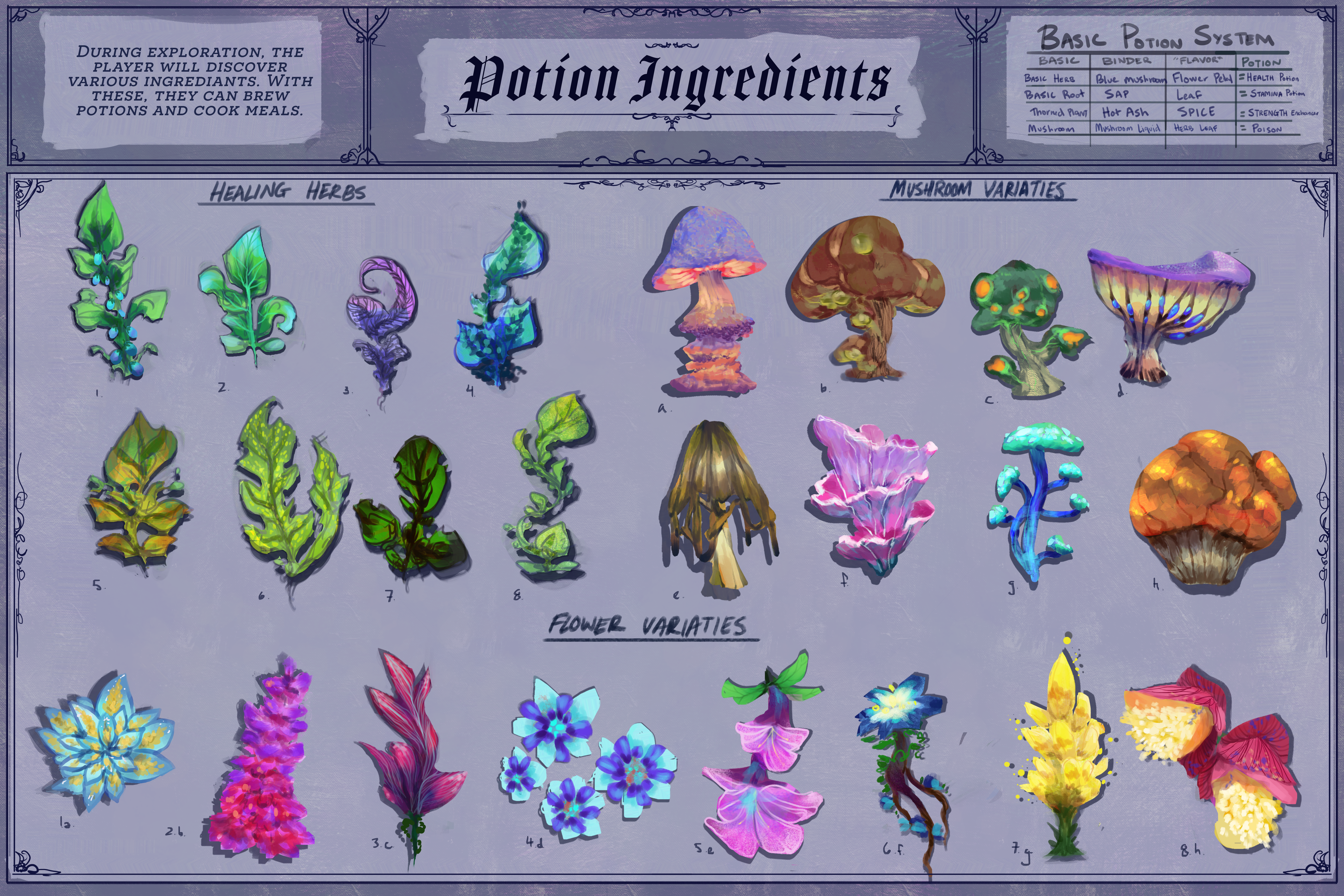 My senior thesis for Minneapolis College of Art and Design (2022)A fantasy, adventure game concept of two characters, Yaromir and Iskel, venturing into the magical unknown only to discover a plot that threatens the world they know. The main game features will be exploration, combat, puzzle-solving, potion-making, and more.